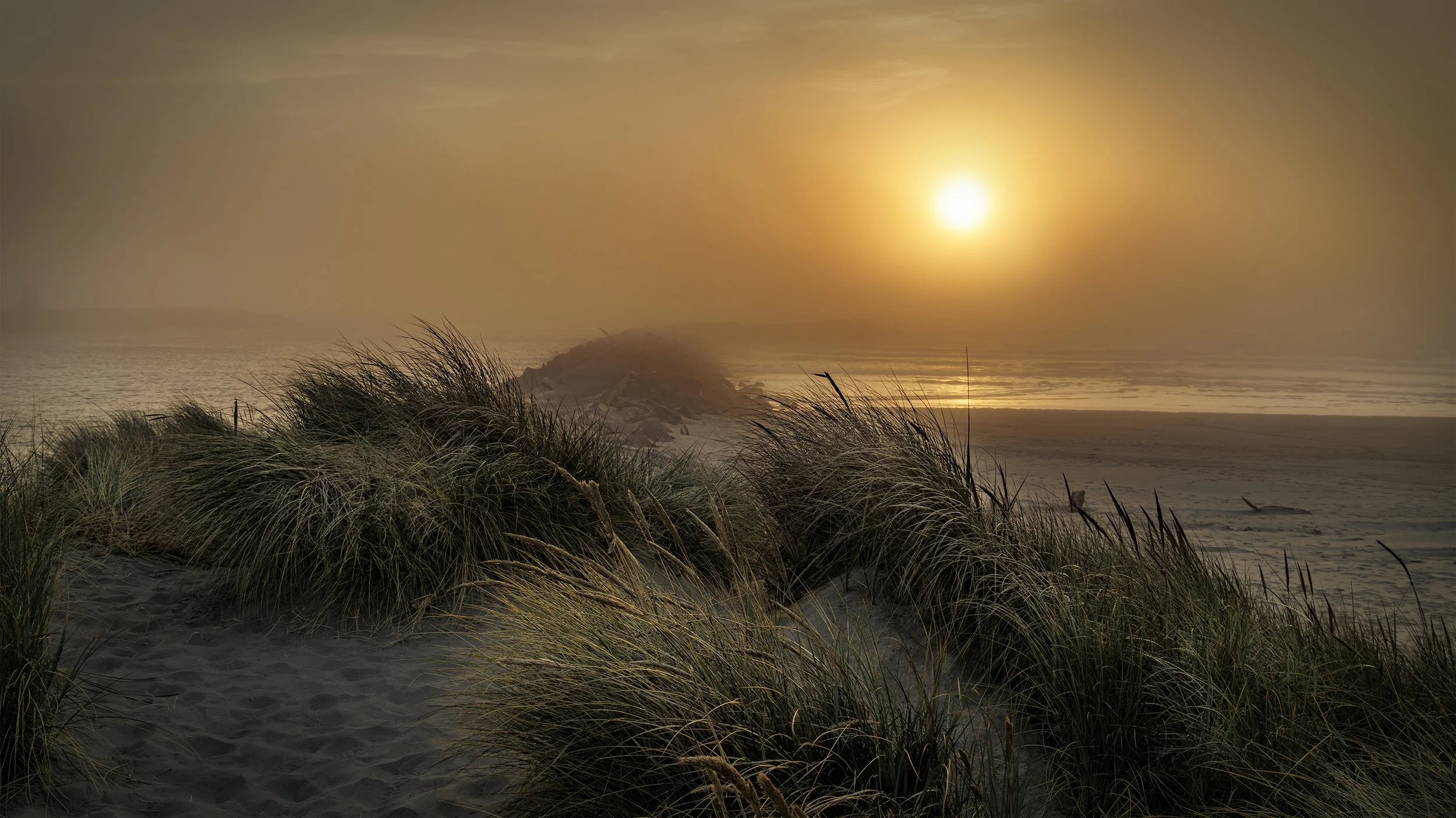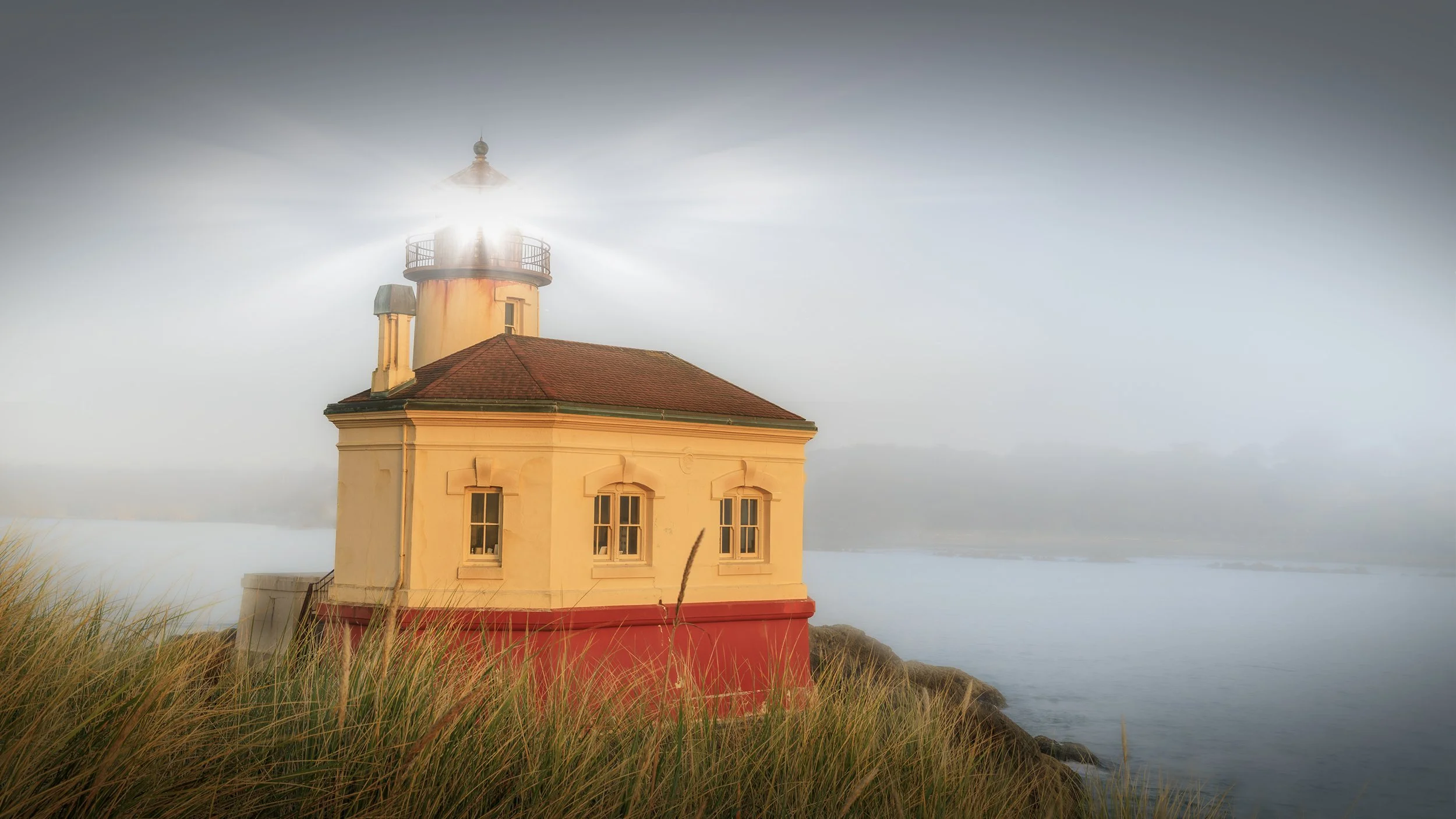 The plan this evening was to photograph the Coquille lighthouse at sunset. However, the conditions deteriorated rapidly with thick fog moving in. I made the best images I could with what I had to work with.