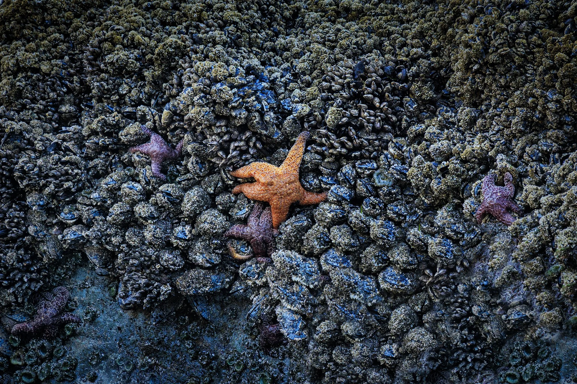 This isn't something I've really experienced before. I was surprised at how much color there was in the life on the rocks. Here's a couple images that I think capture that color.