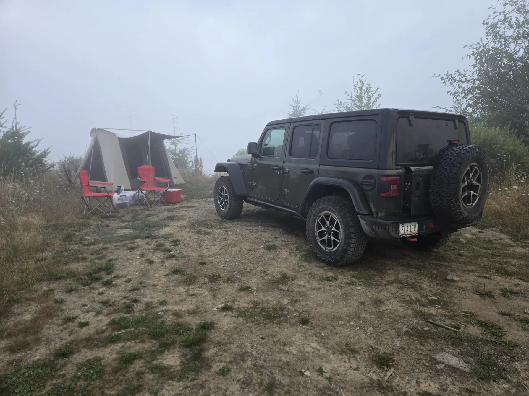 Camp in Fog. Elliott State Forest.