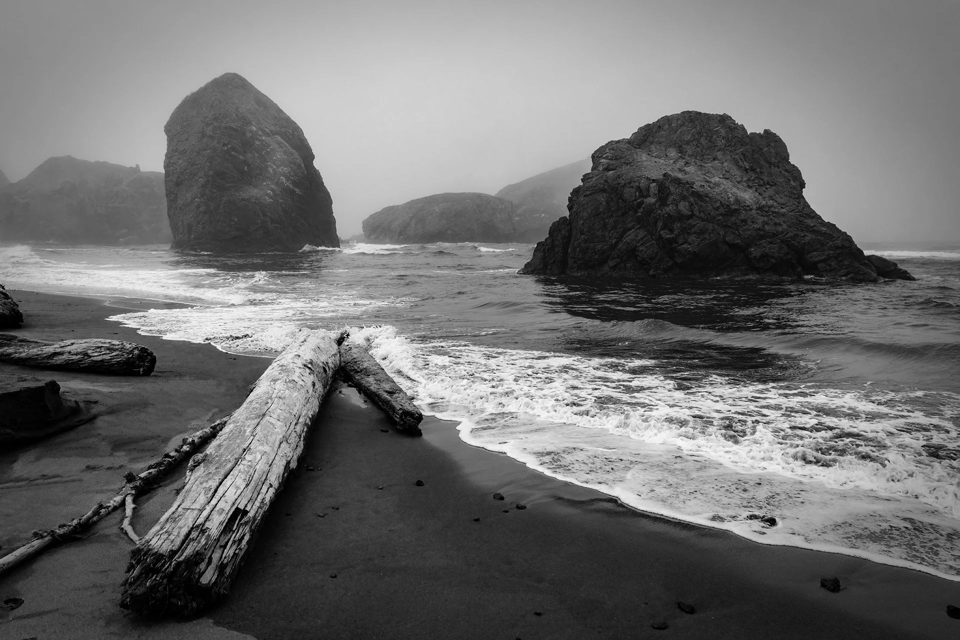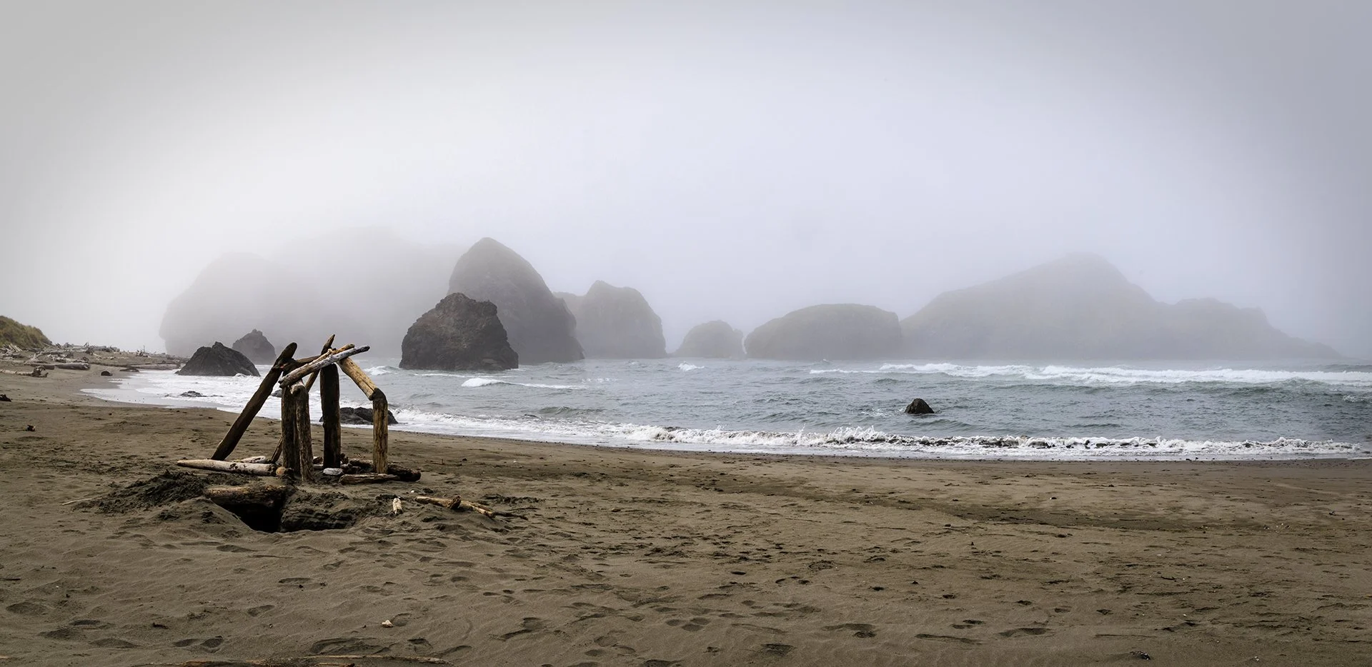 When we woke up we were surrounded by thick fog. We broke camp and got on the road towards home. The plan for the day was to drive down to Crescent City, CA. As we travelled downt the coast, the fog moved in and out. When conditions were good, we stopped for photographs along the coast.