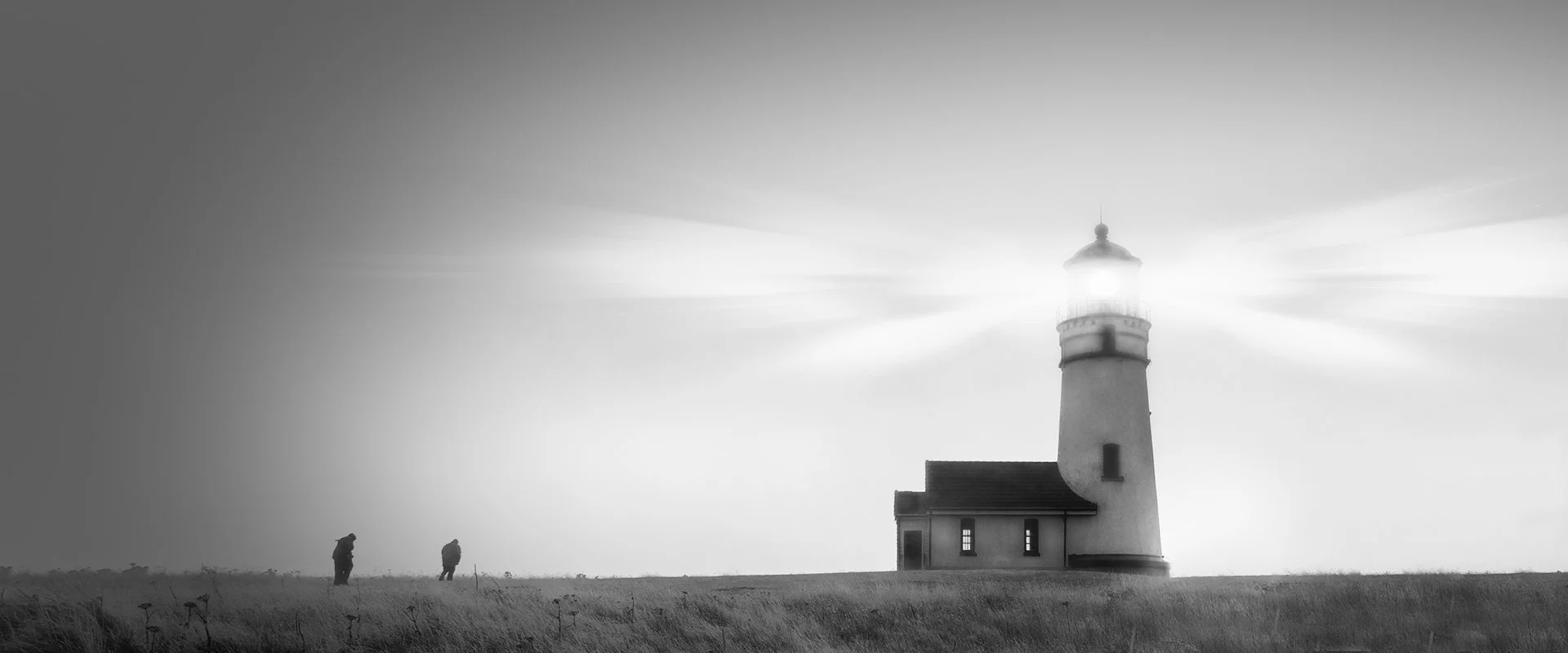 Catching two human figures struggling against the wind to reach the lighthouse makes the photo. Their struggle against the elements adds drama to the photo. Coupled with the fog and the and the cinematic style crop and you have a moody image that I think fires the imagination.